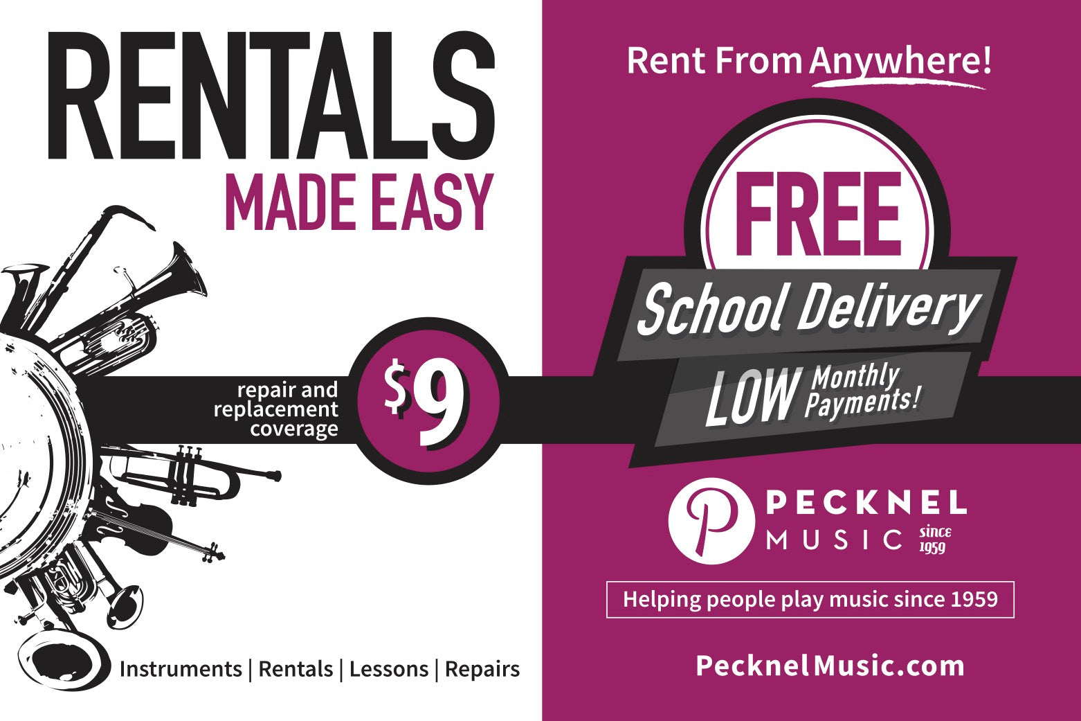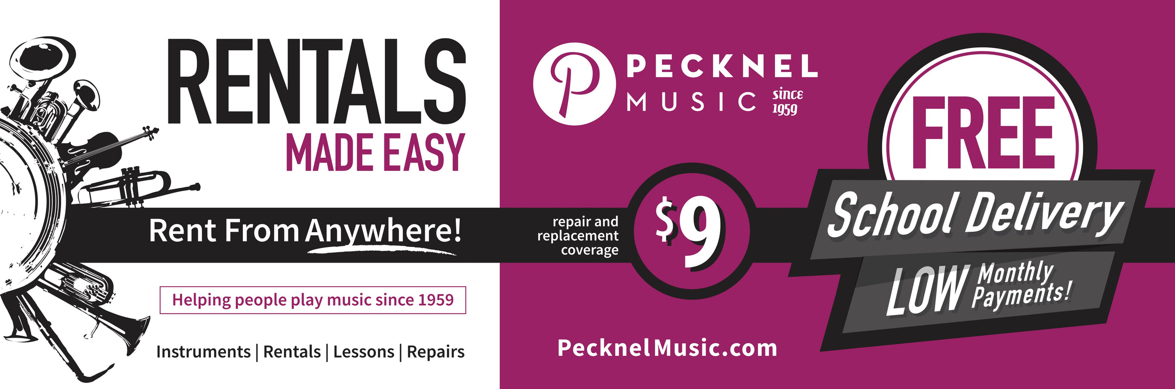 Pecknel Music has helped millions of musicians since 1959 become their best by providing accessible rental and lease programs for high quality instruments. We're here every step of the way from their first concert, to their first solo, and beyond. A company full of musicians, we're prepared to answer any questions and make this process as easy as possible and get your student ready to play!