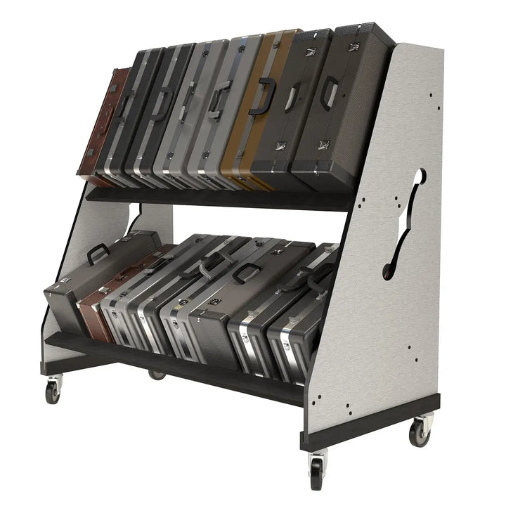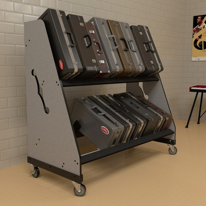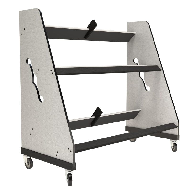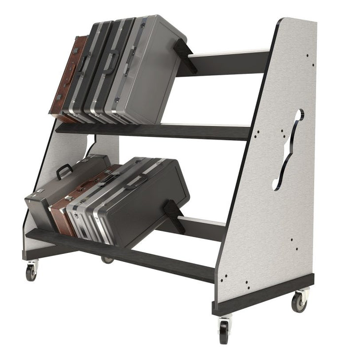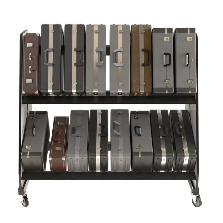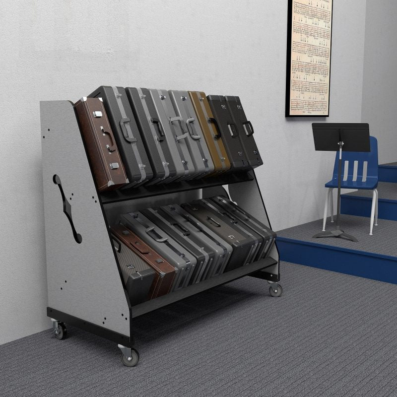 The two-tiered shelving system is designed to make this rack a space-saving powerhouse in tight music classroom environments.