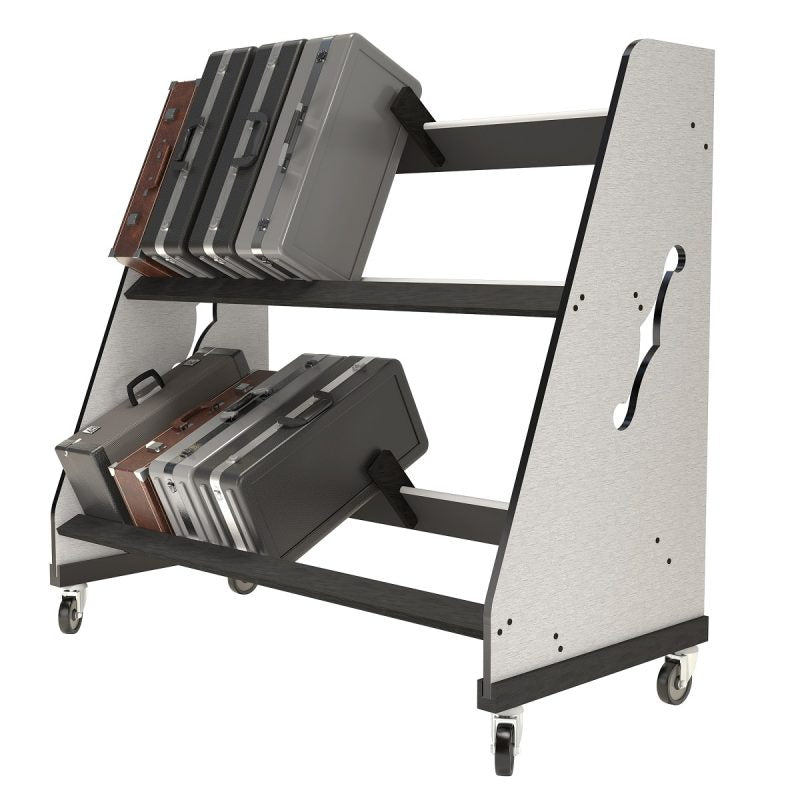 This storage solution is meticulously crafted to hold these brass instrument cases in a compact footprint to conserve classroom space for your marching band or jazz band programs.