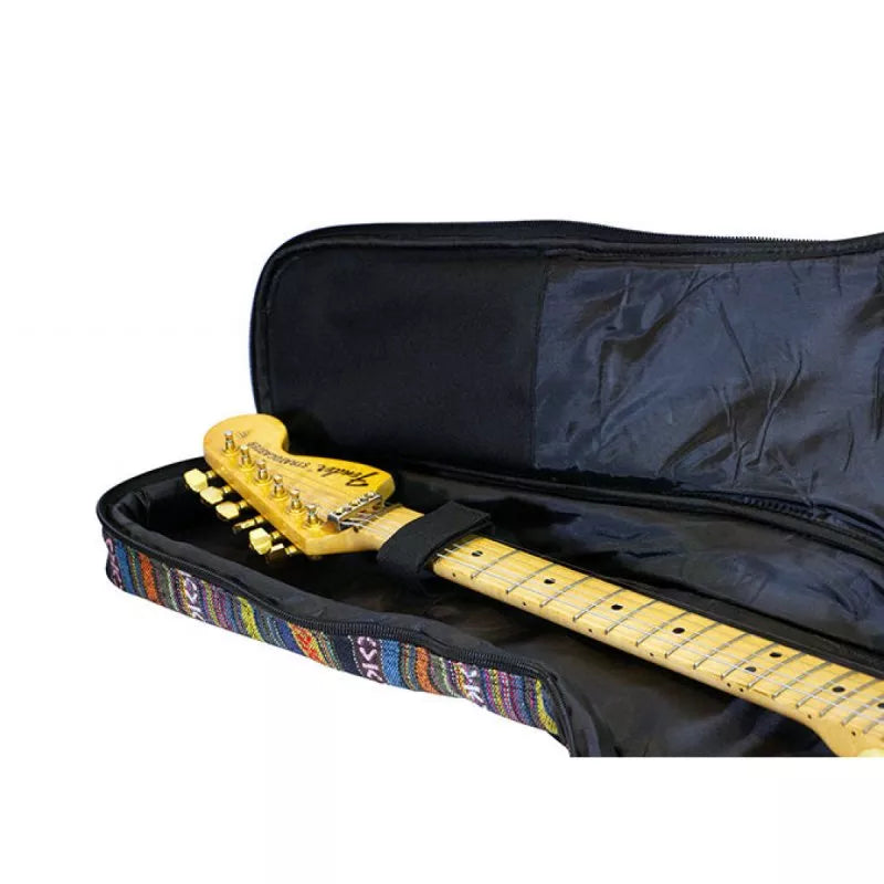 The GBE4770S Striped Electric Guitar Bag delivers reliable guitar protection for safe storage and transportation. Along with a weather-resistant exterior that defends against moisture, the case features padding that prevents impact damage and a smooth lining that safeguards the instrument finish. Two accessory compartments provide convenient access to supplies and tools. Backpack-style straps enable hands-free transportation and a cushioned top handle makes for balanced, comfortable carrying. For ease of loading and unloading, a two-pull zipper fully opens and closes at either end or any point between.