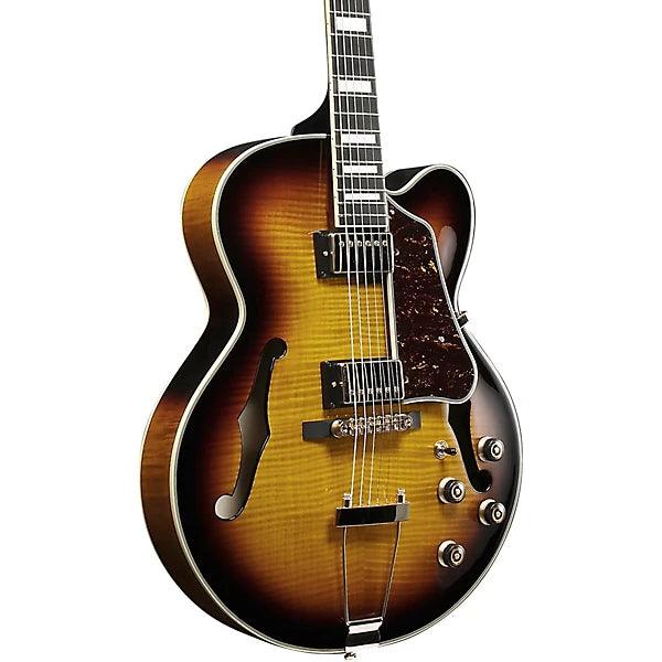 Built with tonewoods selected for their beauty as well as their musicality, the Expressionist line covers the wide range of styles for which Ibanez hollowbody and semi-hollowbodies are known. The full-hollow AF95FM features flamed maple top, back and sides, and handsome ivory binding on the body, headstock and fingerboard. An expertly crafted 3-piece maple/mahogany set-in neck ensures body liveliness and is fitted with a rich ebony fretboard with silky contrasting pearl block inlays. The tortoiseshell colored pickguard provides a gorgeous appearance.