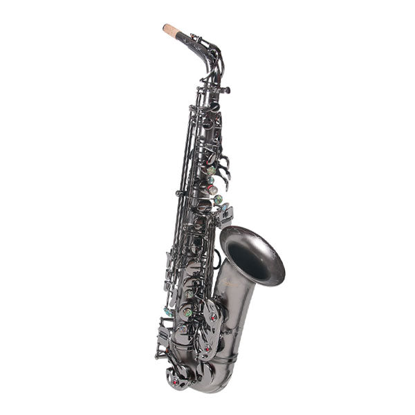 - Frosted/matte black nickel finish over yellow-brass body with gloss black nickel keys and blue abalone touch pieces.