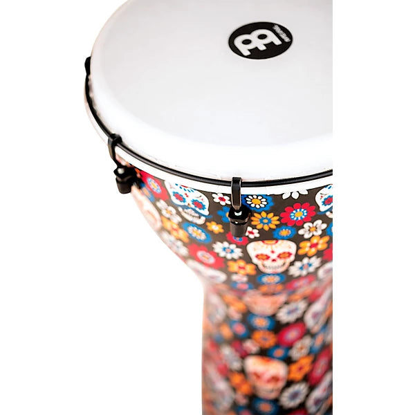 The 12" MEINL Percussion Alpine djembe features an incredibly lightweight yet durable construction that is perfect for travel. Outfitted with a durable synthetic head, the unique body style delivers a wide range of deep bass tones and crisp highs that respond to your touch at all dynamic levels. A sturdy, easy-to-use mechanical tuning system ensures consistent sound regardless of changes in weather, making this drum a great companion for outdoor playing. The striking and eco-friendly finish options complete the djembe's refined appearance.