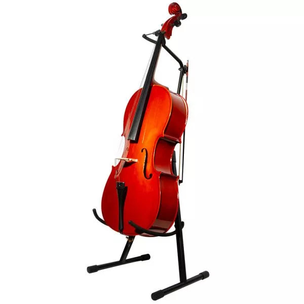 With its height-adjustable lower yoke, our CS7201 Cello/Bass Stand delivers secure storage for, and easy access to, a variety of large string instruments including cellos and double basses. Its wide, splayed tilt-back base provides weight balance that prevents tipping or falling. Rubber padding at all contact points increases grip while protecting the instrument's finish and nonslip feet inhibit unwanted movement of the base. For added convenience, a built-in hook affords handy storage for bows.