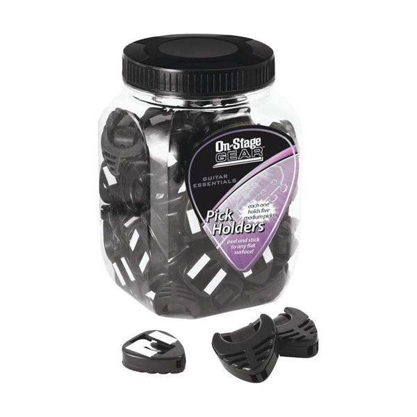 Stores up to five medium-gauge picks or a comparable stack of light- or heavy-gauge picks. The spring-loaded chamber adjusts to firmly grasp the number of picks inside. Included peel-and-stick adhesive backing mounts the holder to guitars, amps, mic stands, or any smooth surface to keep picks within easy reach. Quantity: 1.