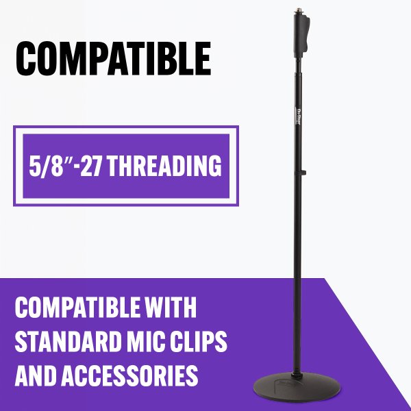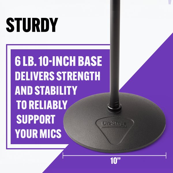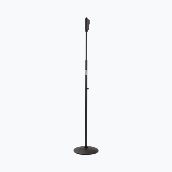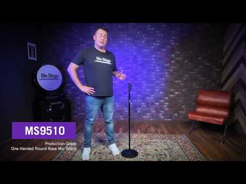 The MS9510 Production-Grade One-Handed Mic Stand with Round Base features a specialized clutch that enables adjustment of the overall stand height using only one hand. The clutch, which releases when squeezed and locks automatically when released, is attached to the upper shaft for quick, easy height adjustments. The 6 lb. round base delivers outstanding balance and stability while rubber pad prevents sliding to keep the stand firmly in place. With its black powder-coat finish that resists chips and scratches, this versatile accessory will remain looking fresh while adding to a professional presentation in any venue, recording studio, or streaming setup.